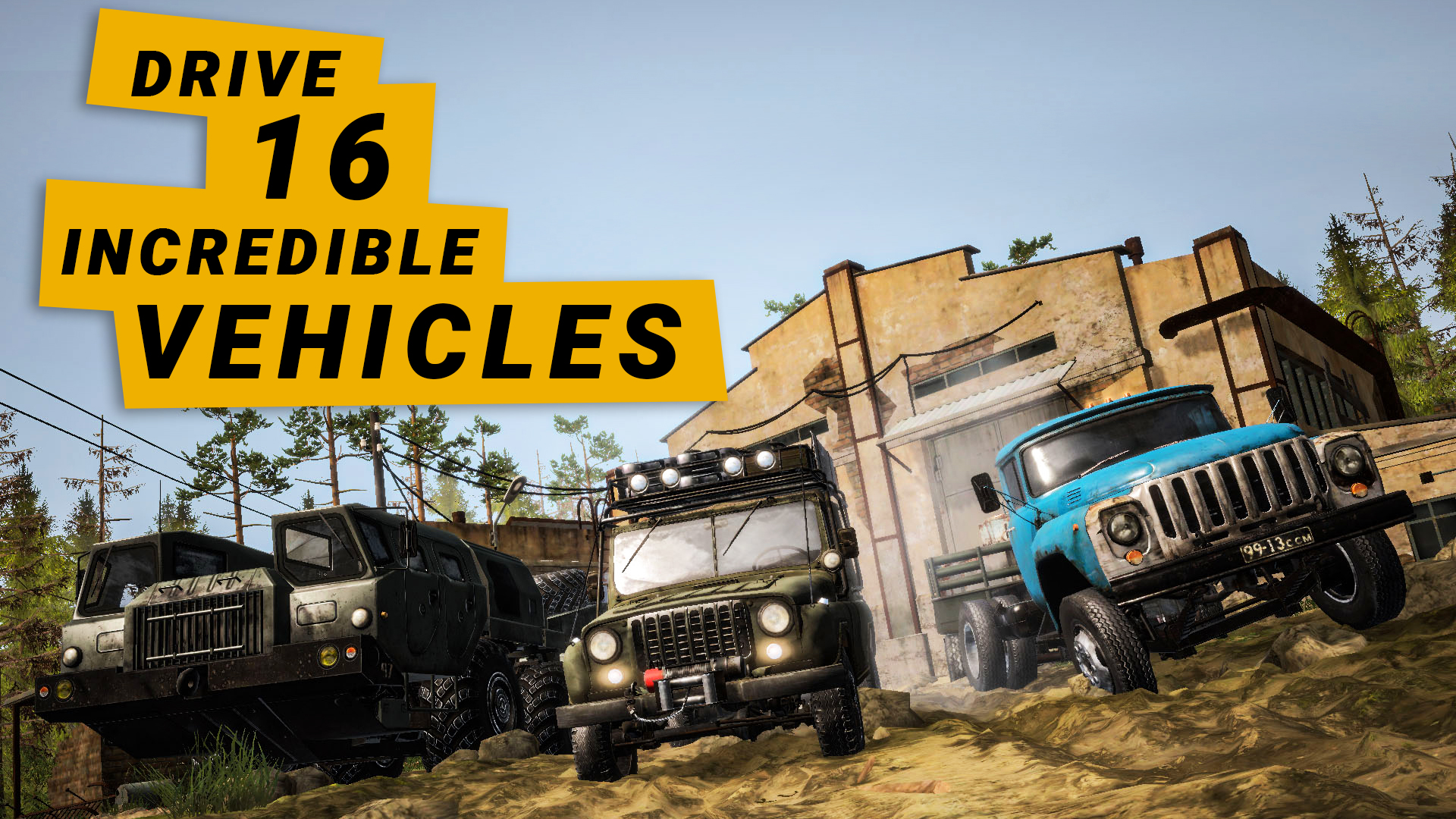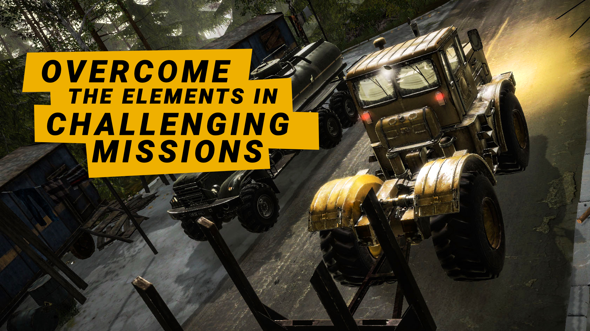 MudRunner comes with a total graphical overhaul and advanced physics engine, along with countless improvements: new vegetation and mud interaction, improved differential lock systems, better soft-body tire simulation, enhanced water physics, and much more. The environment and your vehicles also constantly react to one another, rewarding your best maneuvers and punishing any slip-ups.